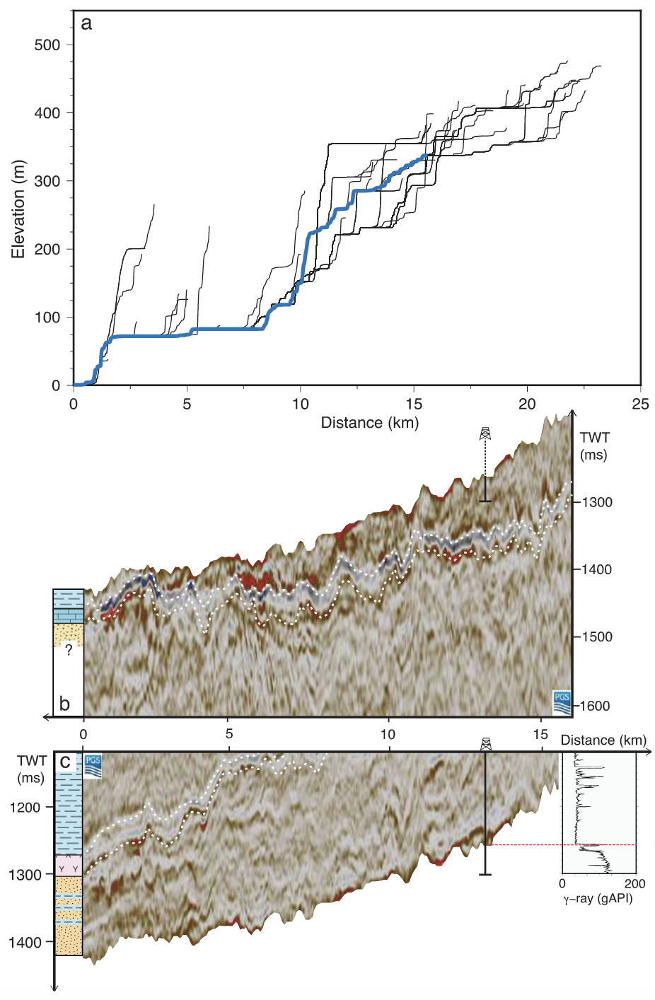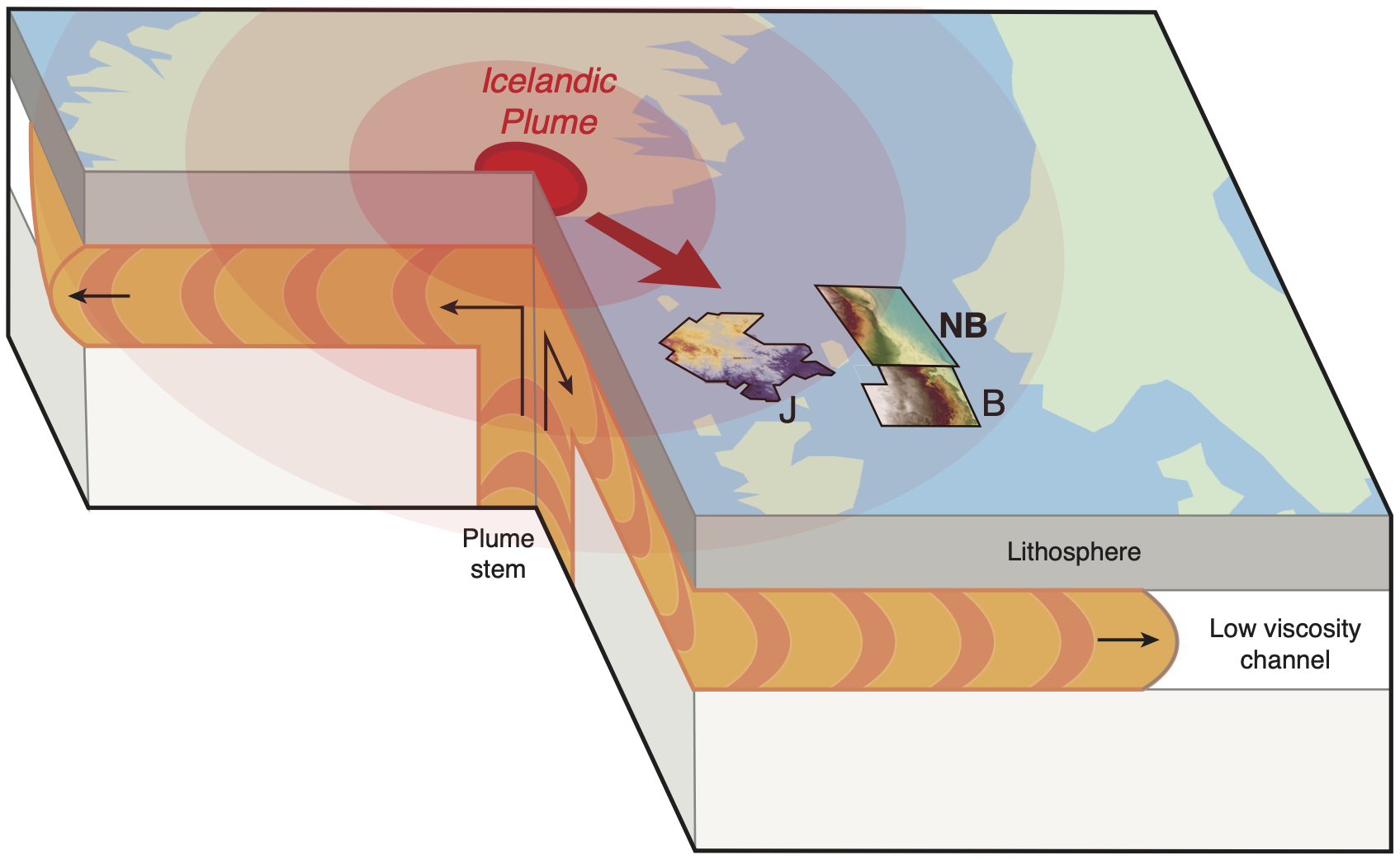 In my first PhD project, we mapped an ancient landscape buried 1.5 km below the seabed in the North Sea, using 3D seismic data, biostratigraphy, well data, and geochemical analyses of cores. We modeled how this surface was uplifted, subaerially exposed, eroded, and subsequently buried, during the initiation of the Icelandic mantle plume at the Paleocene-Eocene Thermal Maximum. Our results are consistent with an Icelandic plume that was pulsing and creating myriad subaerial landscapes across the North Atlantic Ocean.
