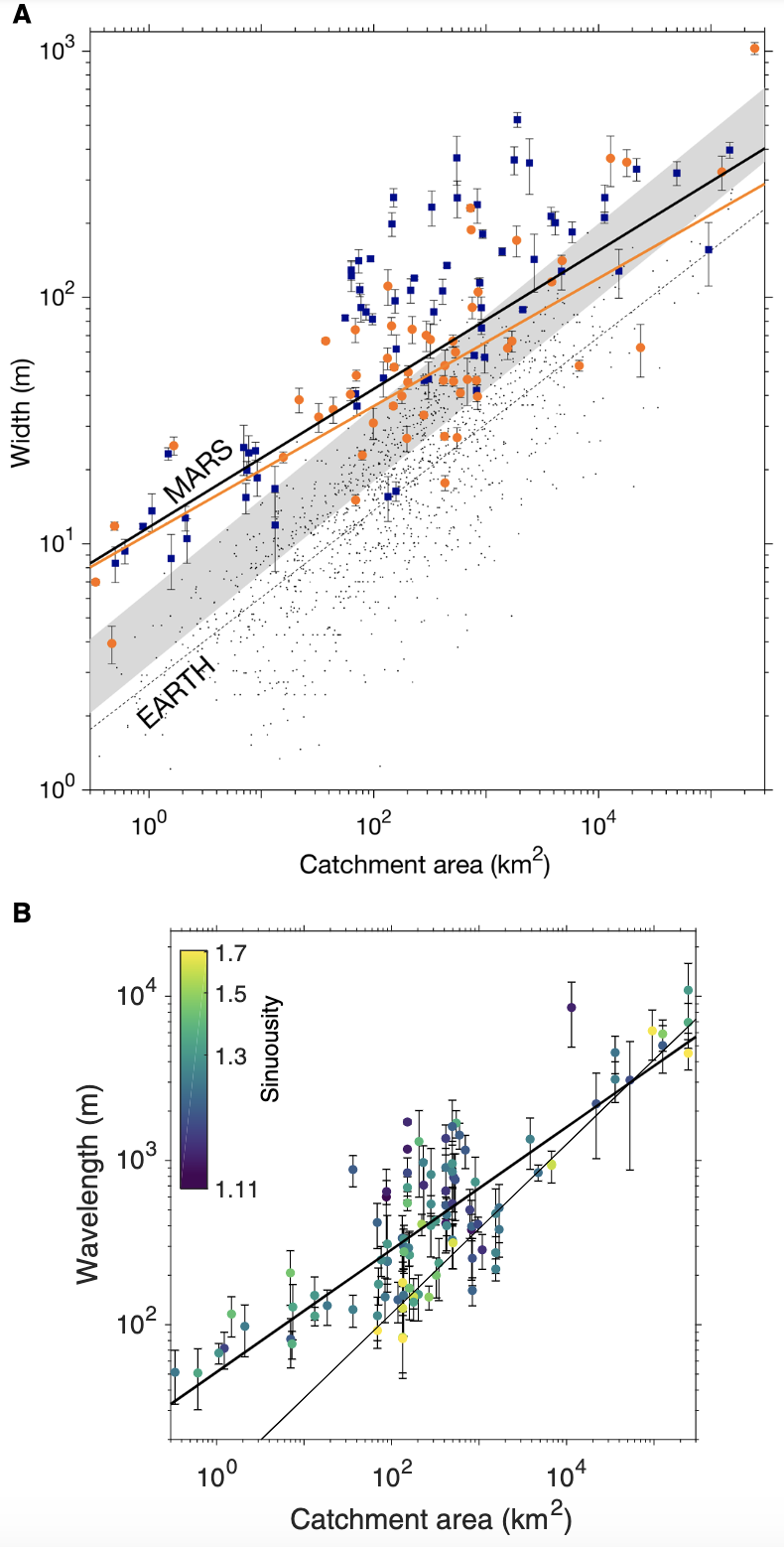 Using the scale (widths and wavelengths) of late-stage paleochannels on Mars, we determined that surface runoff production was much greater, and occurred much later into its history, than was originally thought. Possibly even up until 1 billion years ago (which is recent – for Mars standard at least)! This has important implications for habitability and our understanding of how Mars’ climate ultimately declined, and places new constraints on the unknown mechanism that caused wet climates.