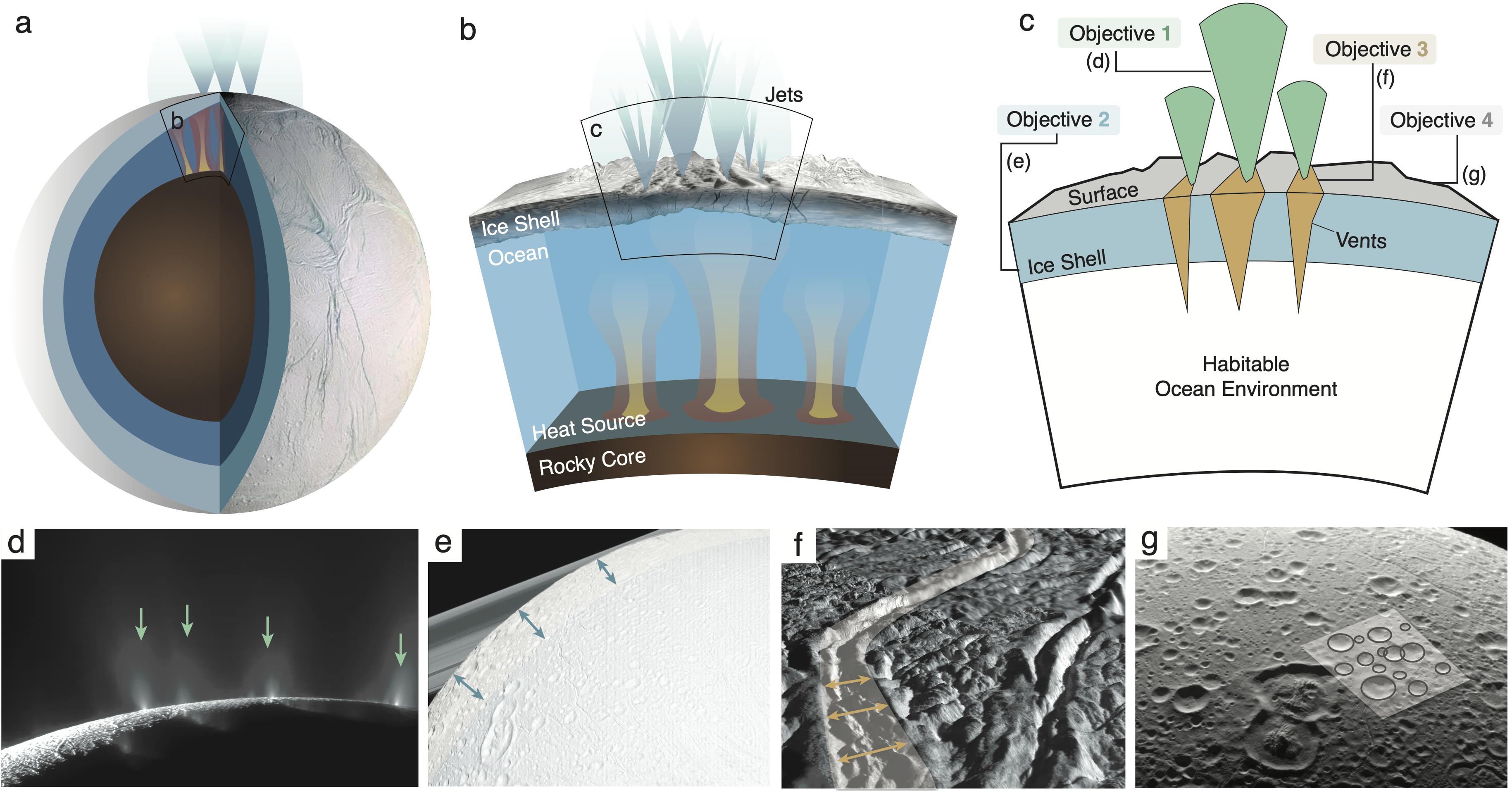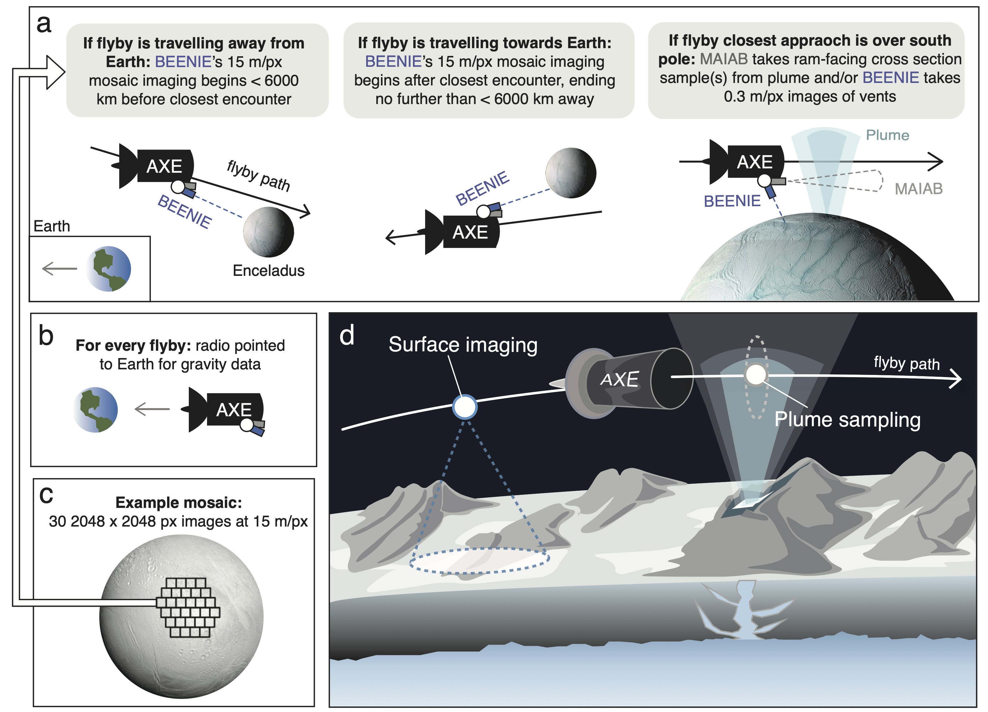 Here we lay out our concept for an Enceladus mission, which we developed during the JPL Planetary Science Summer School (PSSS). Check out the link for applying here! In this concept study, we tackle four key science objectives that will shed much light on Enceladus, Saturn’s tiny – but mighty – moon. First we look at biotic signatures in its famous giant water plume. Second, we use gravity measurements to explore its ice shell thickness and dynamics. Third, we explore the cryovolcanic nature of the vents. Finally, we look at the global distribution of crater morphology to determine ancient ice shell orientations.