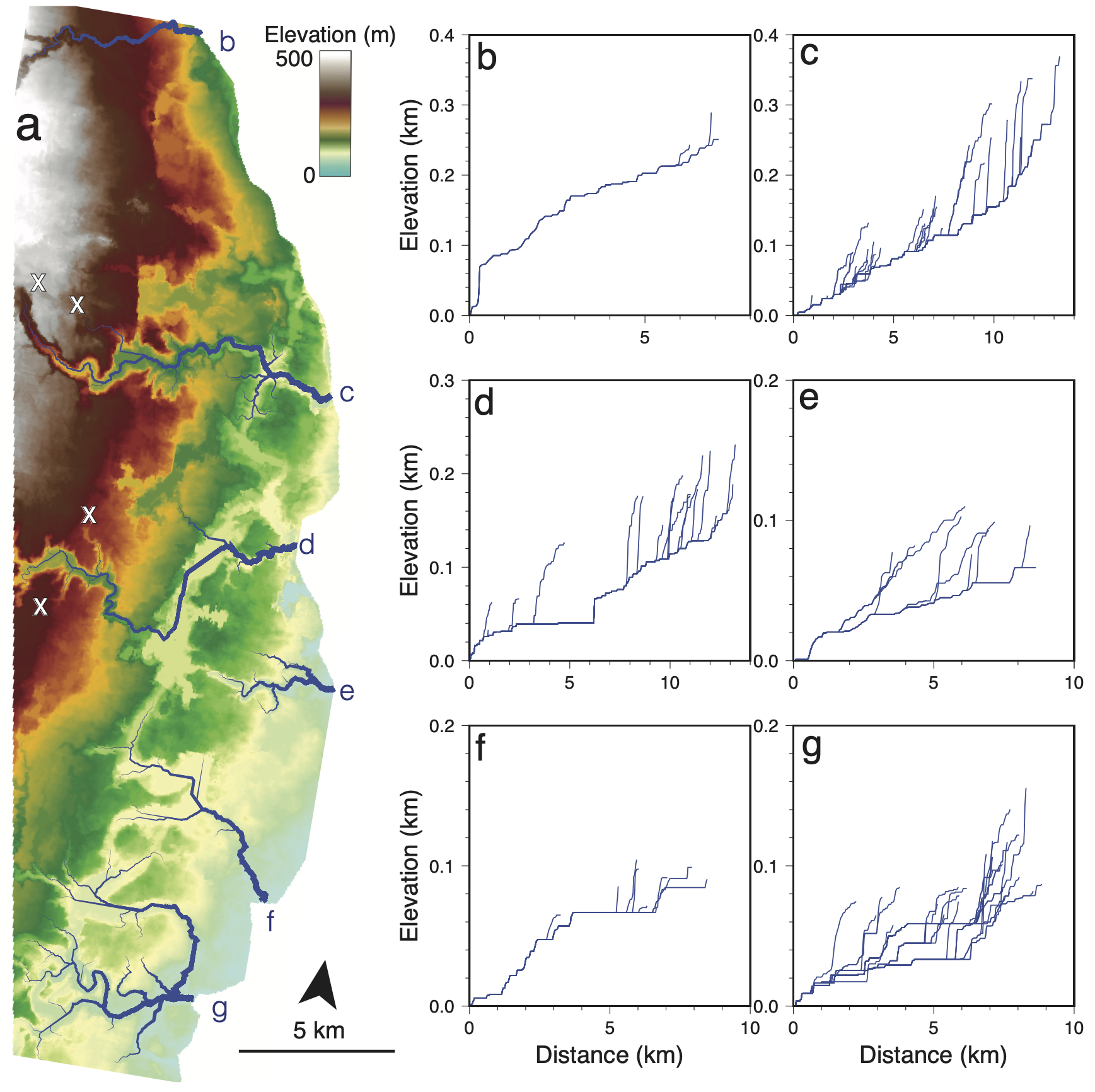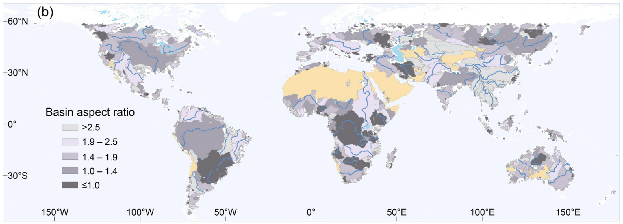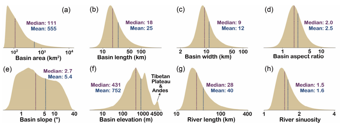 What do basin shapes look like at a global scale? How do they vary geographically? What laws dictate their geometries? In this data paper we compile a database of over half a million basins and their main river trunk. This is a great dataset for examining the forces that dictate fluvial geometries, completed using a topographic resolution of 90 meters!