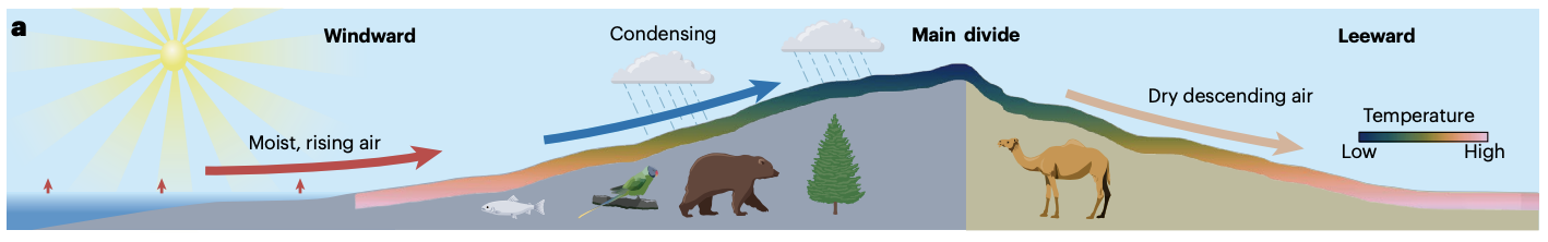 of rainfall via orographic effect and temperature through altitude–temperature relationship, thereby influencing the richness and type