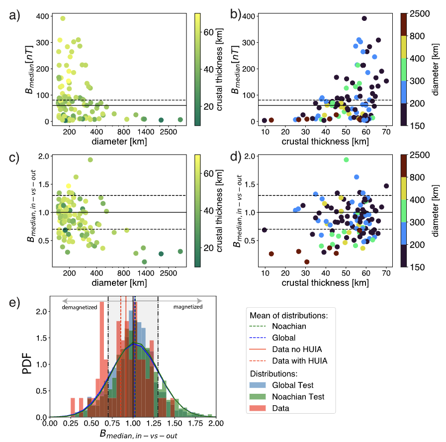 Craters on Mars are a unique window into Mars’ past, since they record the processes that were happening at the time of formation. In the context of its magnetic field, during an impact the crust is heated and shocked and recrystallization occurs; craters can thus demagnetize or magnetize the crust depending on the presence or absence of a dynamo field at the time. Here, we find that many craters exhibit a demagnetization signature, even the very old ones — thus, it seems like magnetization of craters not a reliable indicator for dynamo activity!